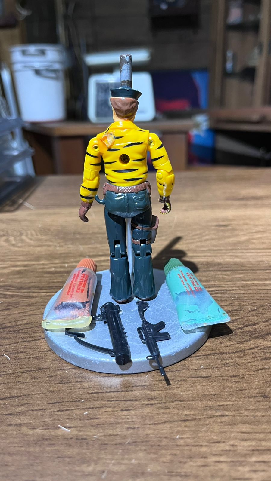 Boneco em boas condições, com avarias nas mãos, cueca e demais materias estão em bom estado de conservação, porém incompeto.